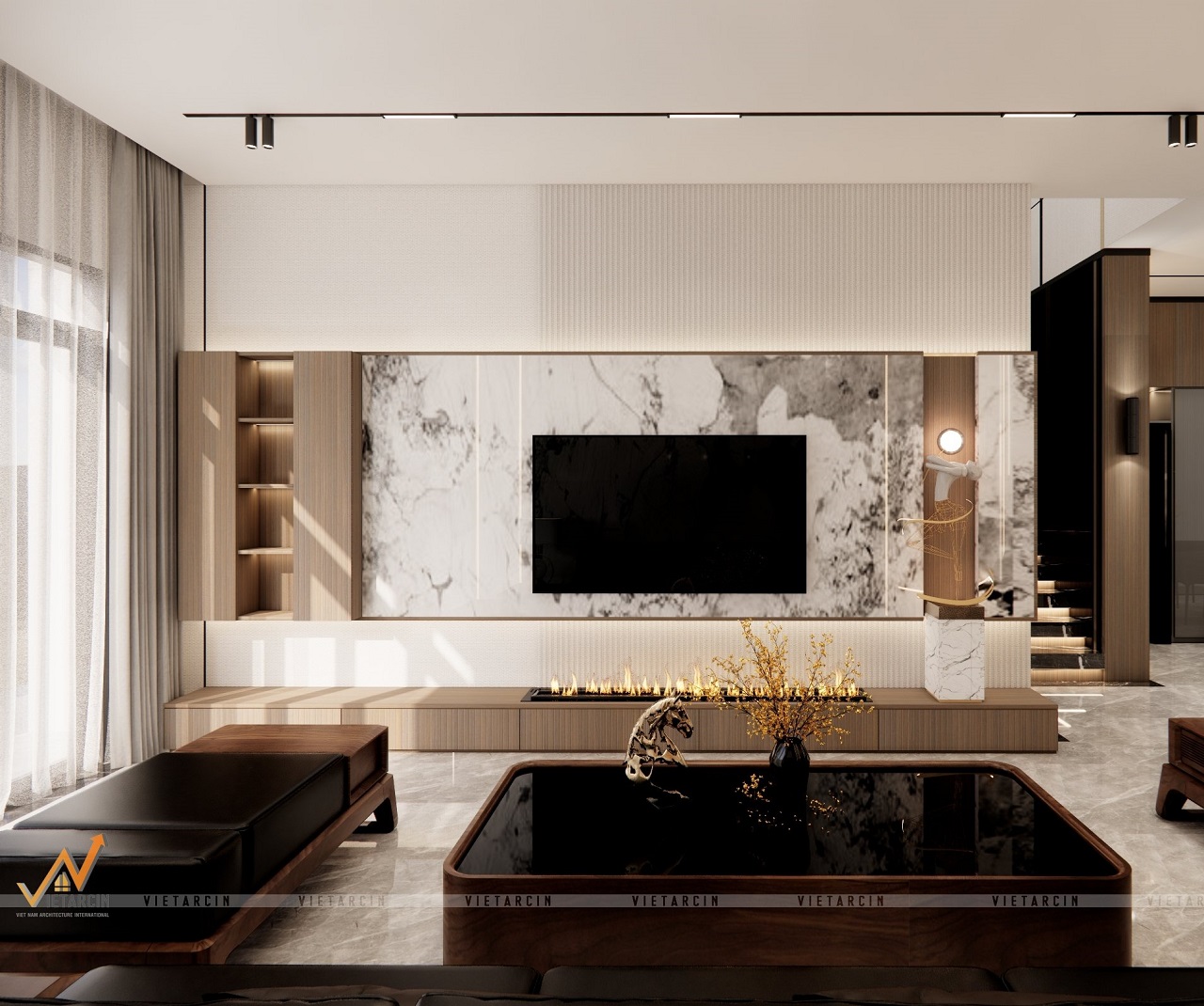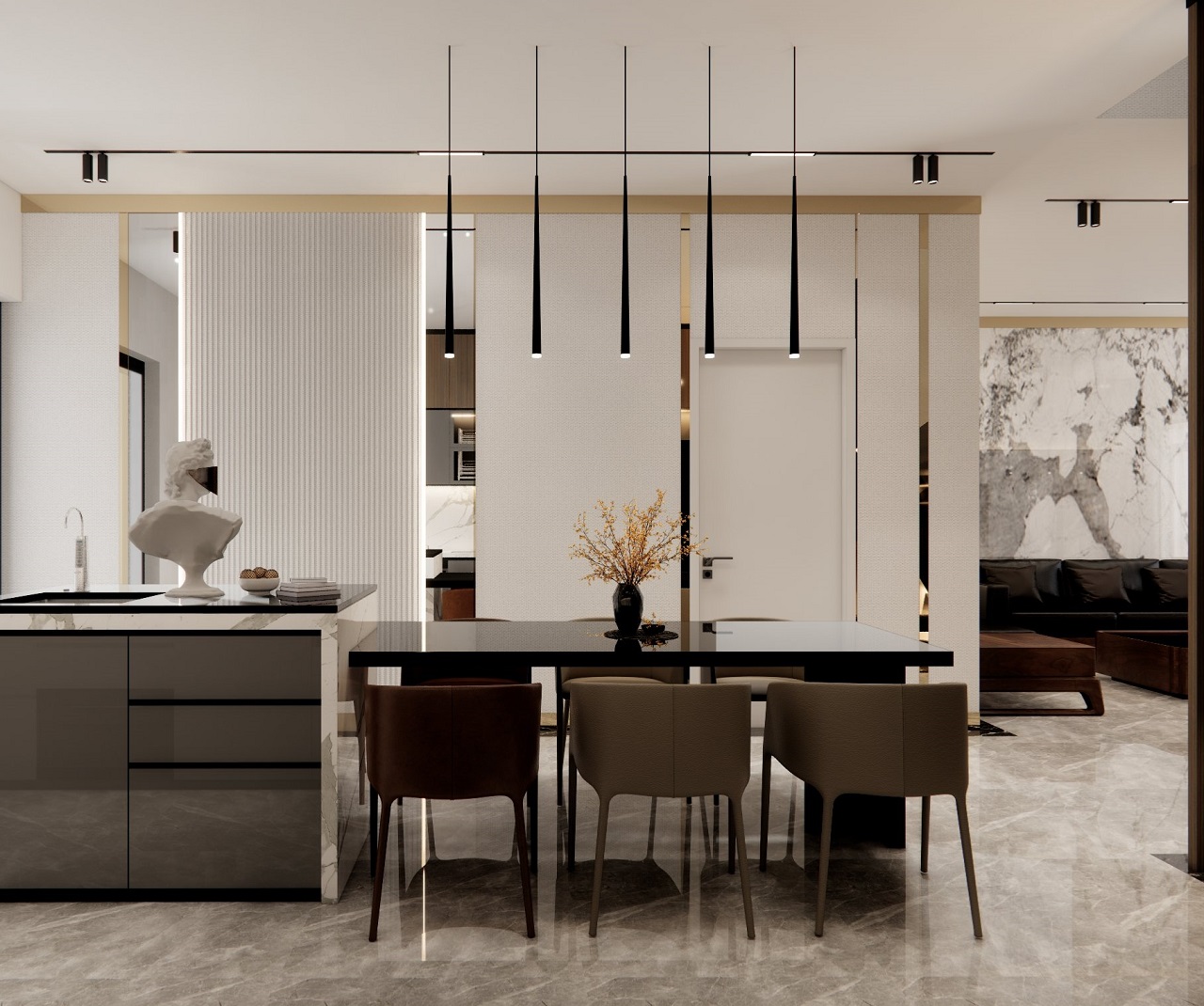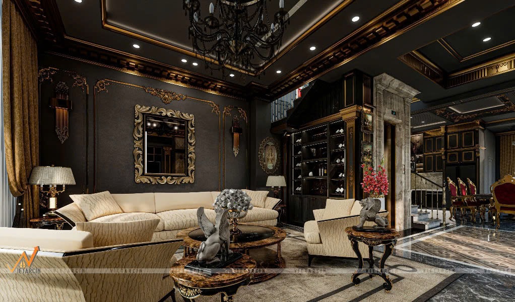 Quan trọng hơn, từng chi tiết trong không gian đều được chăm chút tỉ mỉ, từ việc lựa chọn vật liệu cao cấp đến bố cục tinh xảo. Nhằm toát lên vẻ quyền lực và khẳng định đẳng cấp riêng biệt của gia chủ.