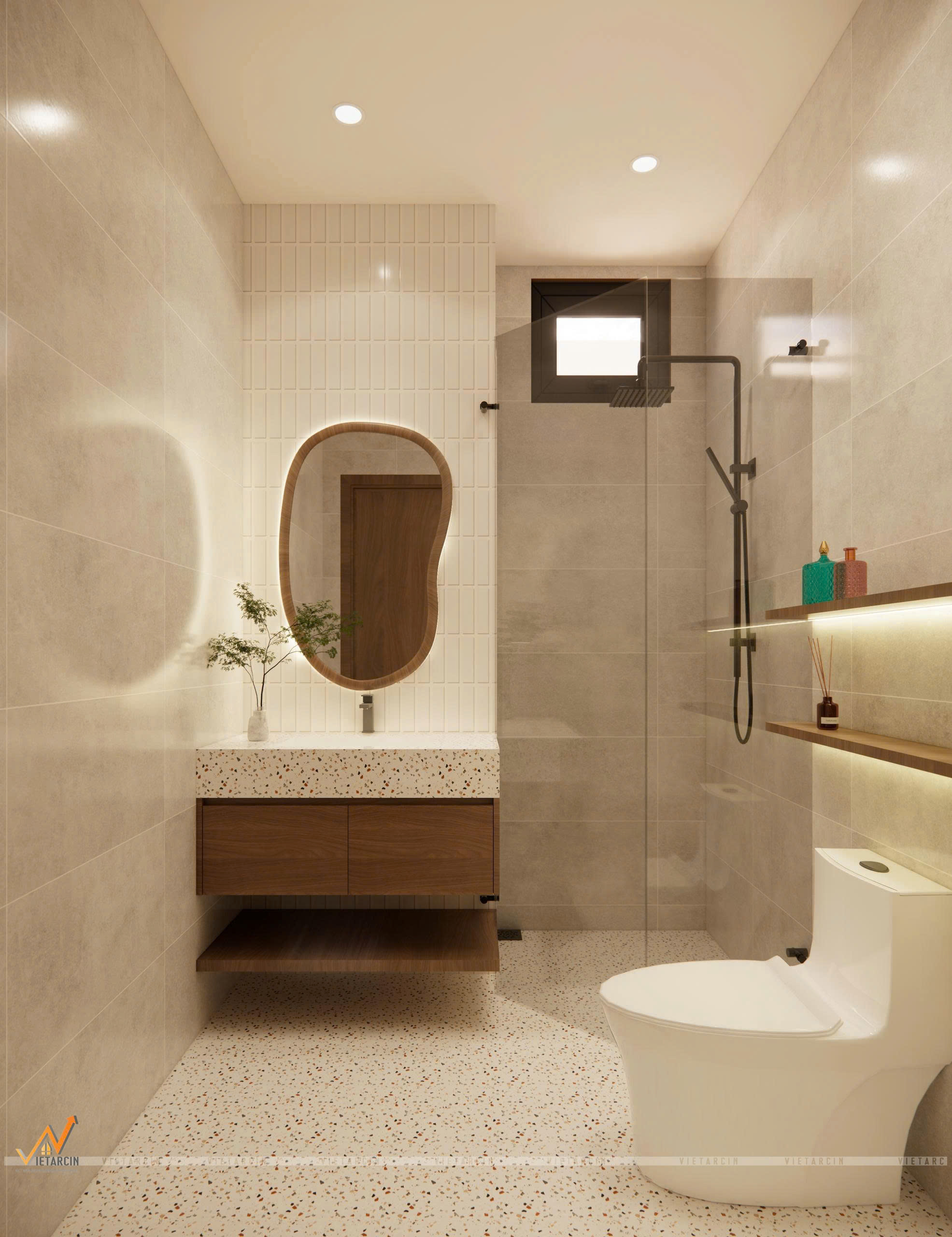 Mặc dù có một số điểm đã hoàn thiện cơ bản (gạch men màu be), Vaidecor đã can thiệp tối thiểu để giữ ngân sách, tập trung vào việc: