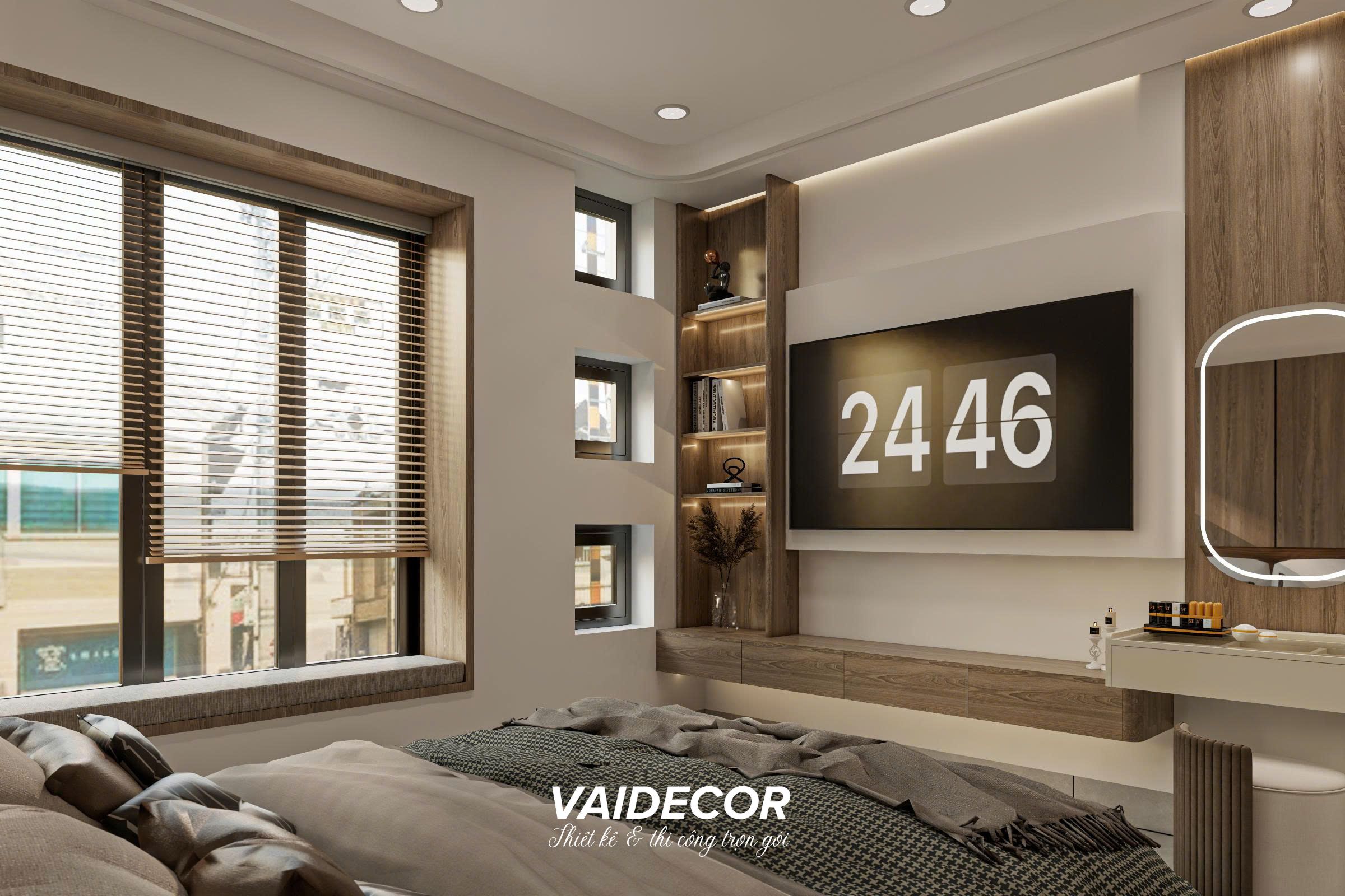 Không có bất kỳ khoảng hở góc chết hay sự xuất hiện của những món đồ nội thất cồng kềnh. Mọi thứ được “may đo” vừa vặn vào các hệ vách, trả lại mặt sàn rộng rãi và tạo cảm giác thư thái tuyệt đối như đang bước vào một phòng khách sạn 5 sao.