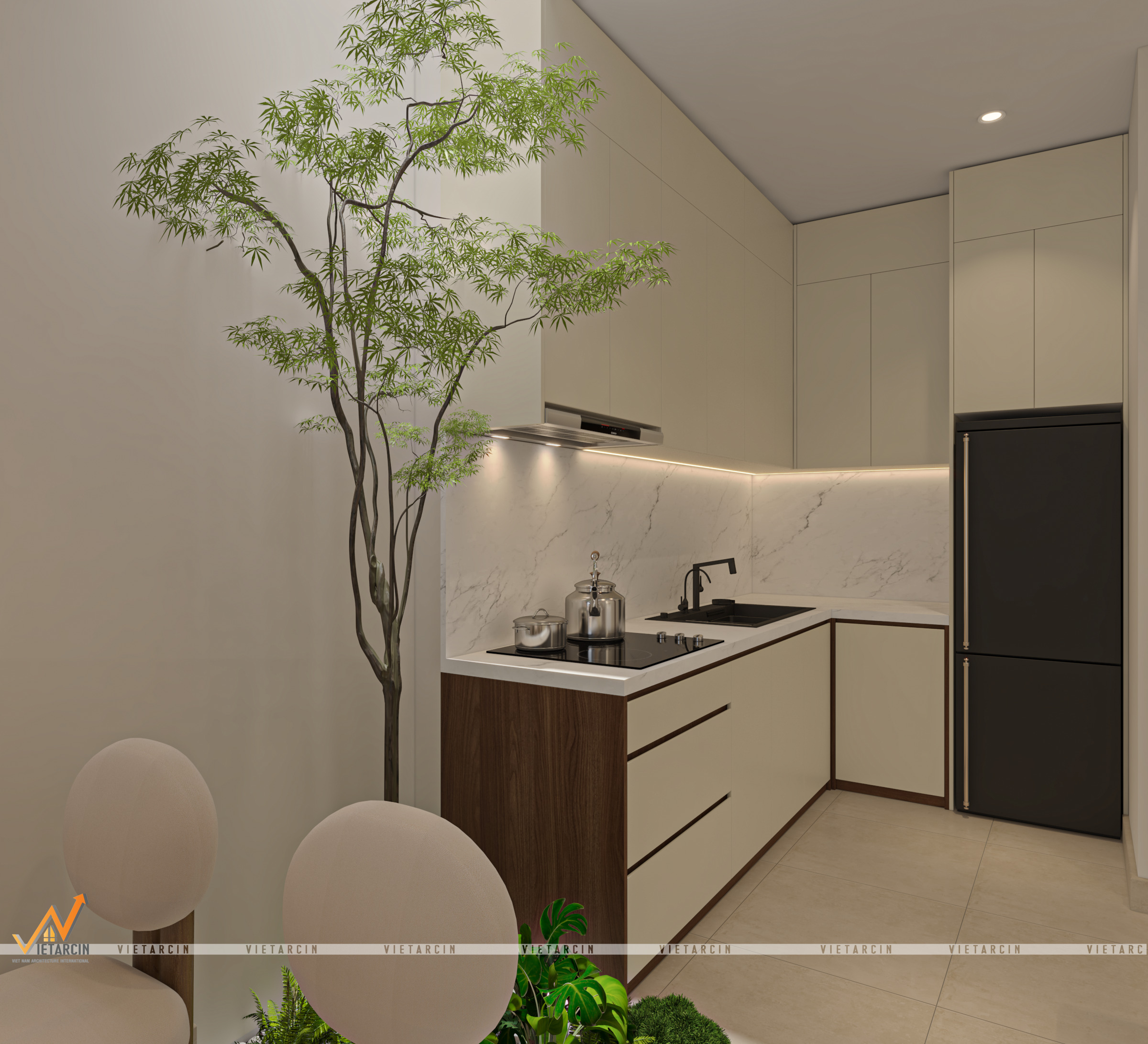 - Giá trị mang lại: Hệ tủ bếp hiện đại giúp việc lưu trữ trở nên tối đa và thao tác nấu nướng dễ dàng hơn bao giờ hết. Sự xuất hiện của cây xanh không chỉ lọc không khí, khử mùi thức ăn mà còn mang lại sinh khí tự nhiên, giúp người nội trợ luôn cảm thấy thư giãn khi chuẩn bị bữa ăn cho gia đình.