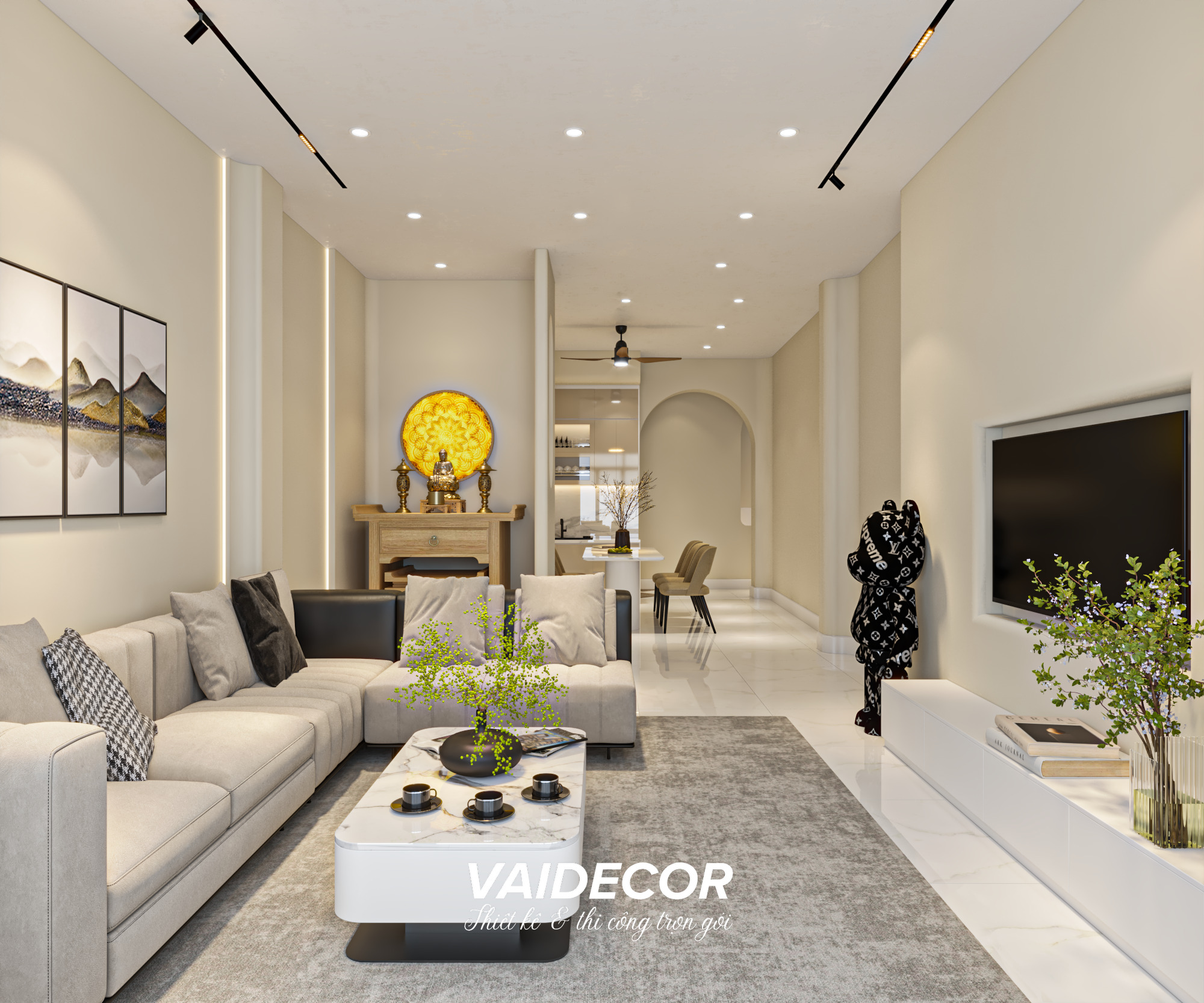 Không gian phòng khách mới đã giải quyết triệt để bài toán về diện tích và ánh sáng. Bằng việc ứng dụng nguyên tắc thiết kế tối giản, nội thất thông minh và màu sắc liền mạch, Vaidecor đã mang đến cho gia đình anh Quân một không gian sinh hoạt chung không chỉ rộng rãi, tiện nghi mà còn toát lên sự sang trọng, thanh lịch đúng chất Hiện Đại.