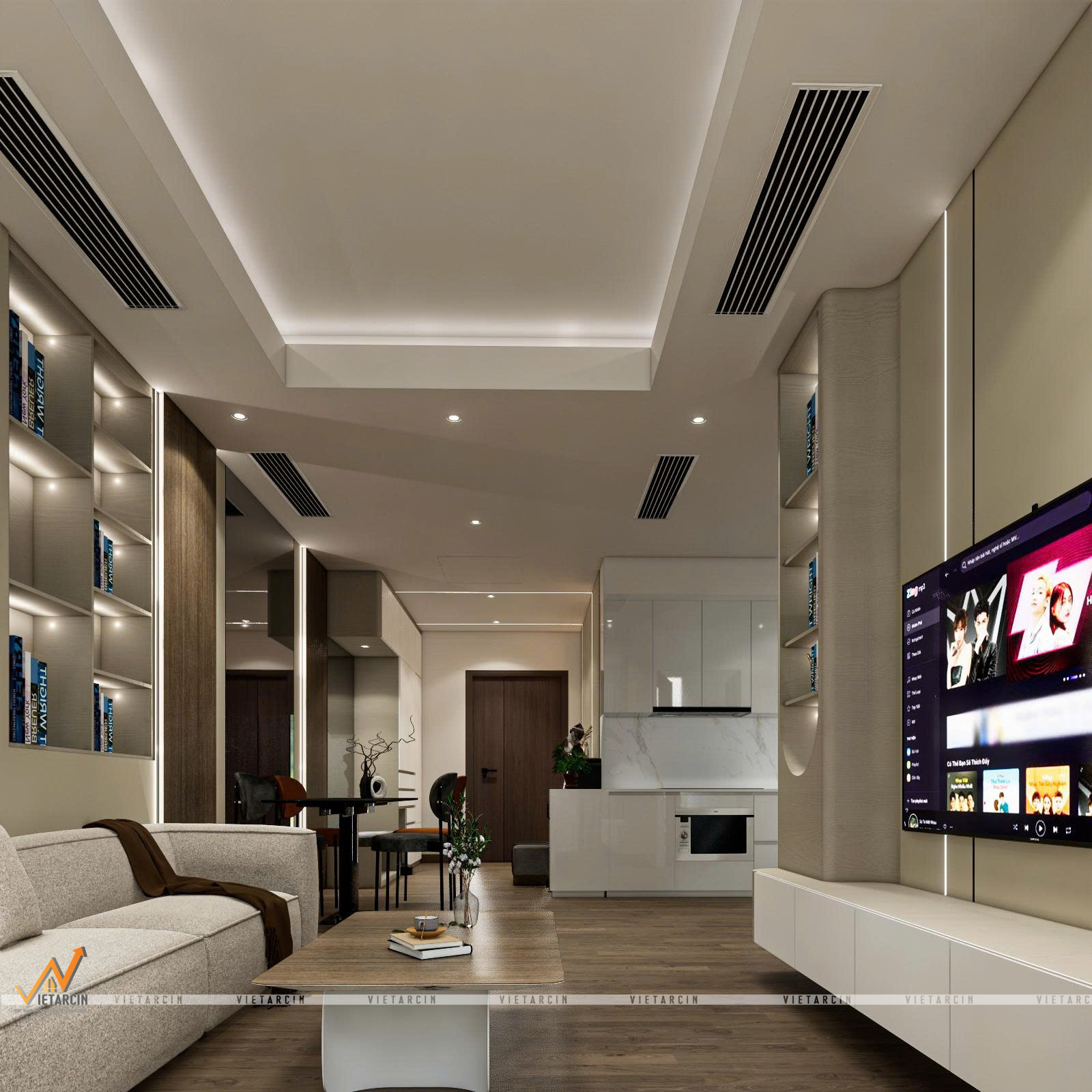 Để đáp ứng những yêu cầu khắt khe của anh Nam, chúng tôi đã đưa ra phương án thiết kế tổng thể dựa trên nguyên tắc “Less is more” của phong cách Hiện đại. Chúng tôi tập trung vào việc tạo ra một không gian mở, liền mạch, đồng thời tích hợp các giải pháp nội thất thông minh để tối ưu hóa từng mét vuông.