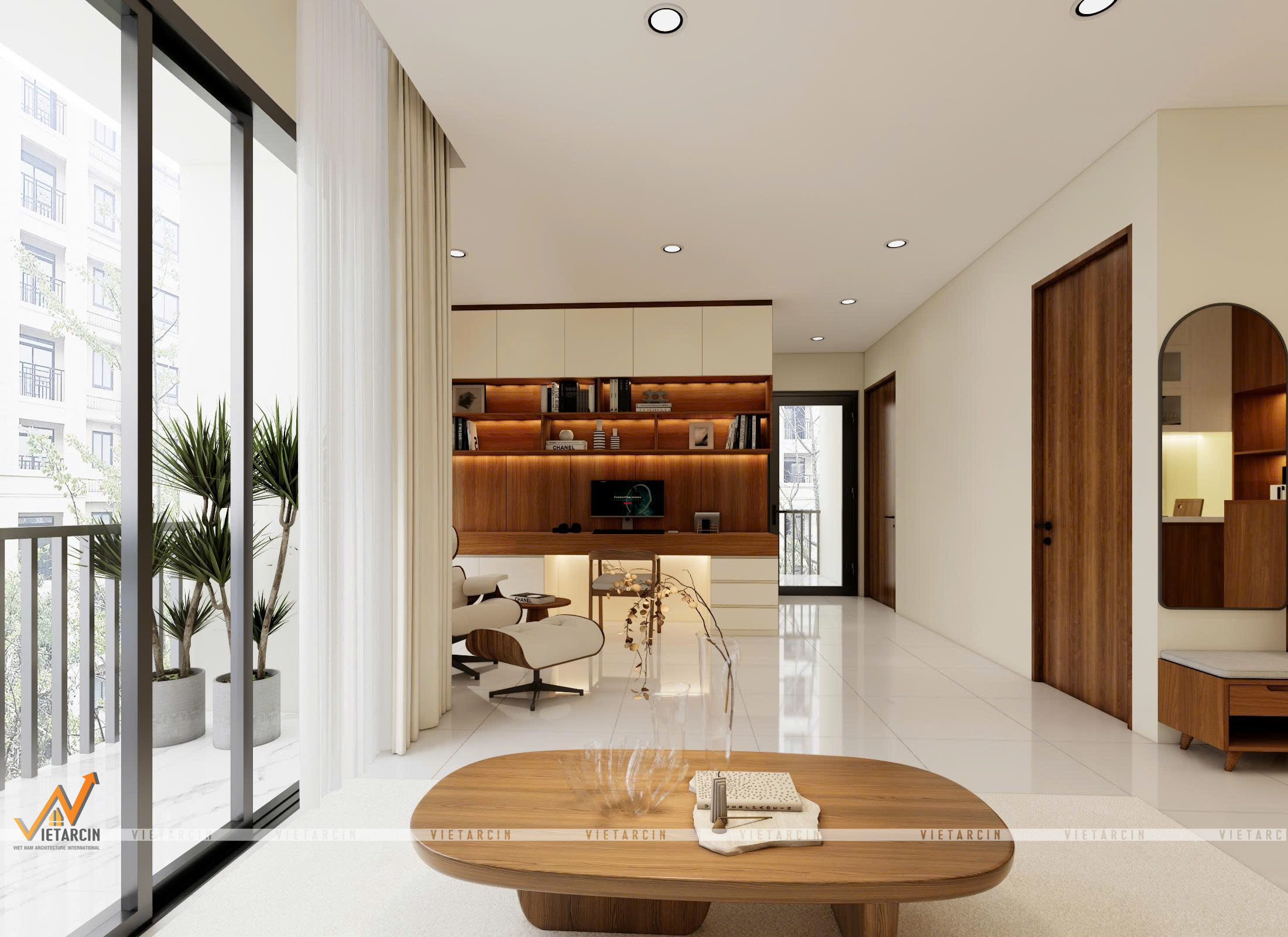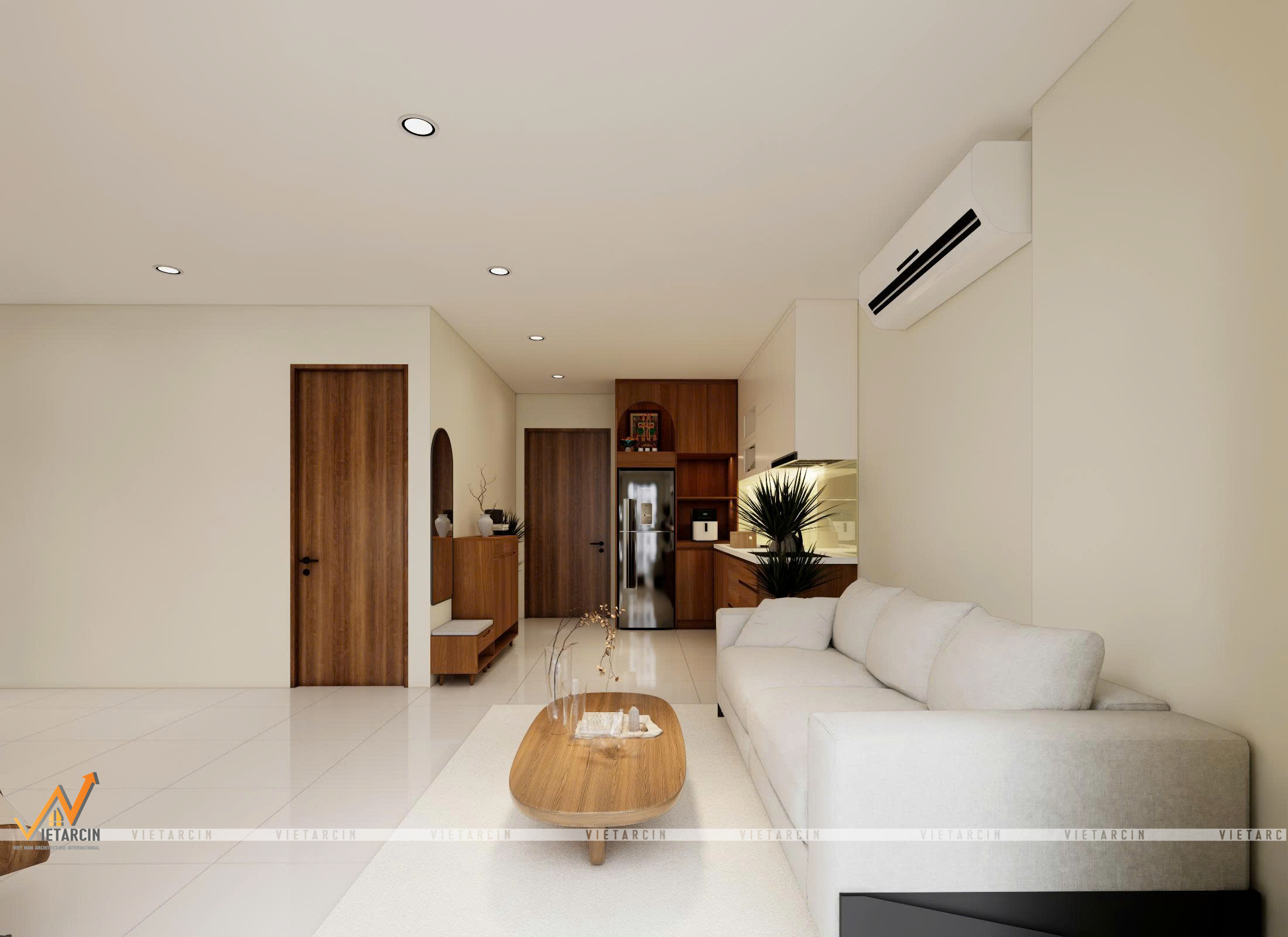 Từ những phân tích về hiện trạng và thấu hiểu sâu sắc mong muốn của chị Thảo, đội ngũ Vaidecor đã đề xuất một phương án thiết kế tổng thể tập trung vào ba yếu tố cốt lõi: “Tối giản – Tối ưu – Thẩm mỹ”. Ý tưởng chủ đạo là loại bỏ hoàn toàn sự lộn xộn bằng các hệ nội thất “đo ni đóng giày”, trả lại sự thoáng đãng vốn có cho không gian và khoác lên nó một tấm áo mới ấm áp, tinh tế bằng bảng màu kem – gỗ. Chúng tôi không thay đổi kết cấu căn hộ mà tập trung vào việc thiết kế nội thất thông minh để giải quyết triệt để các vấn đề.