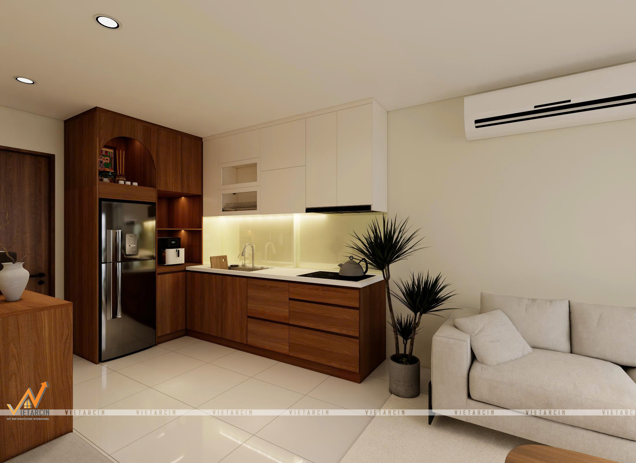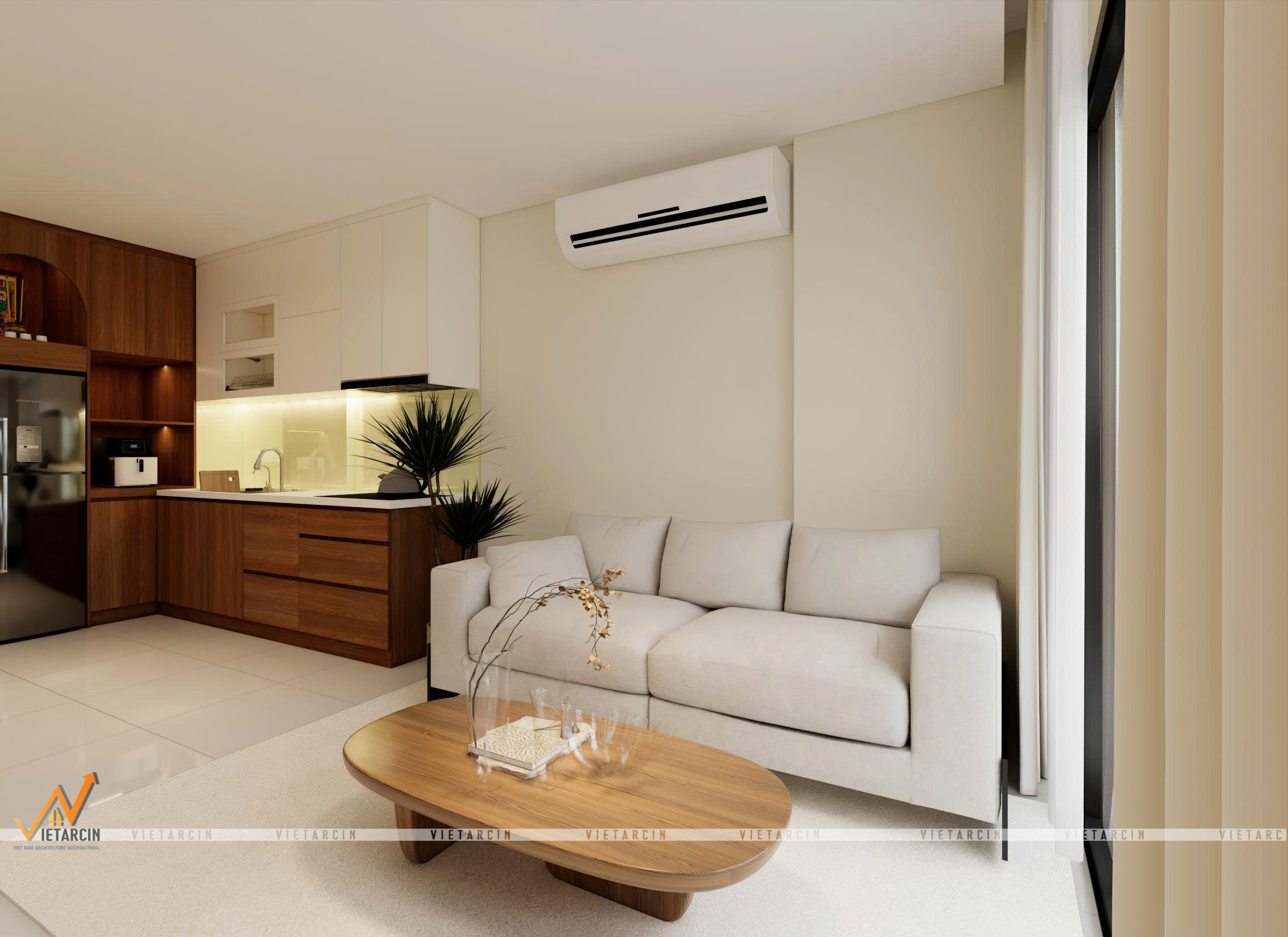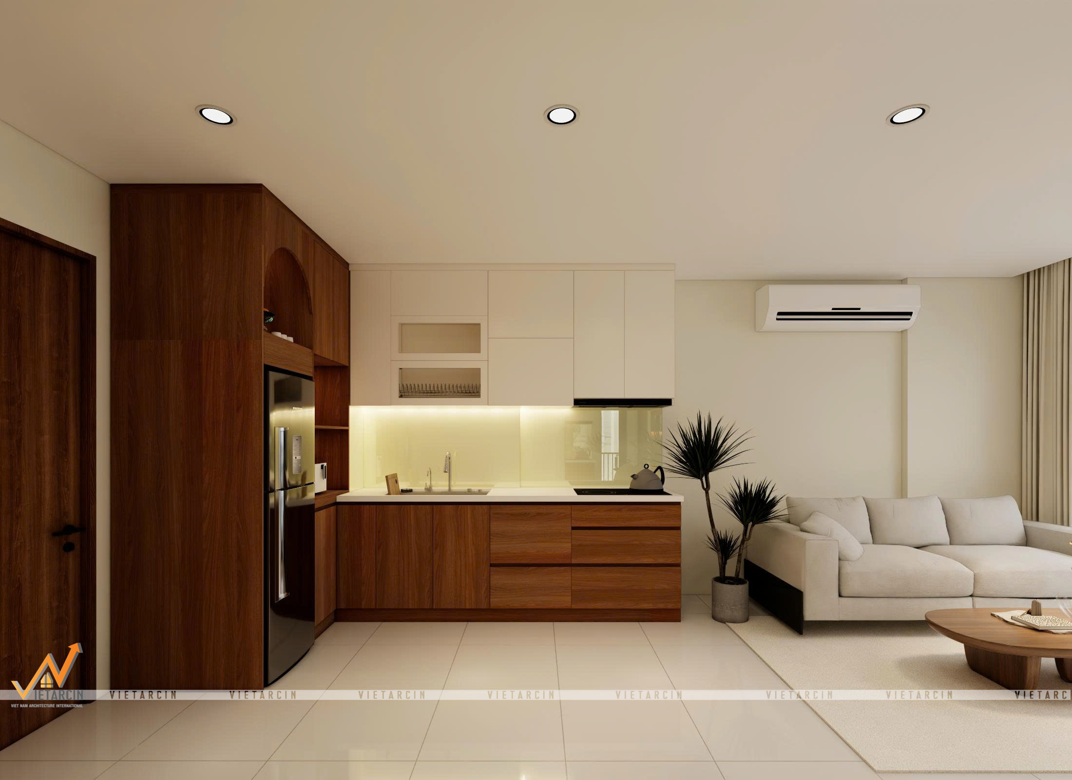4.1. Không gian phòng khách liền bếp