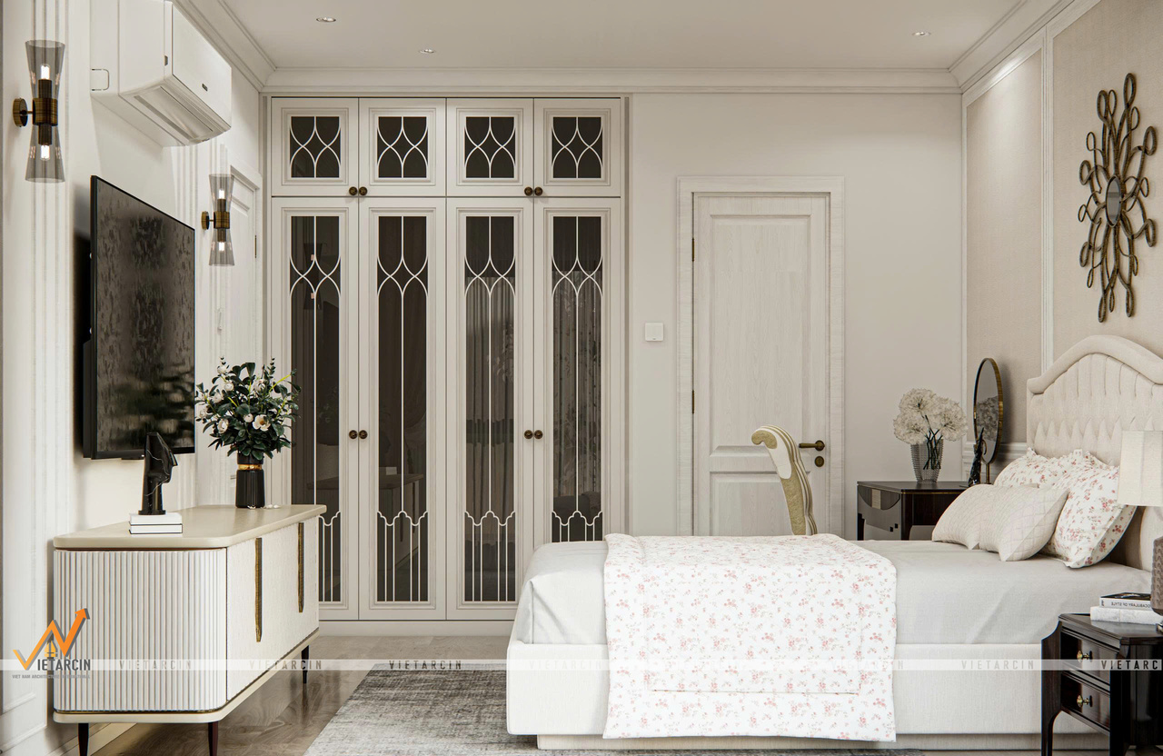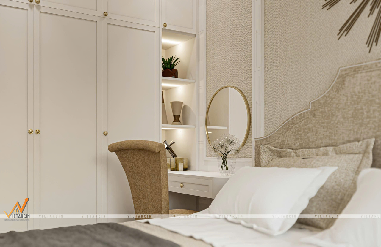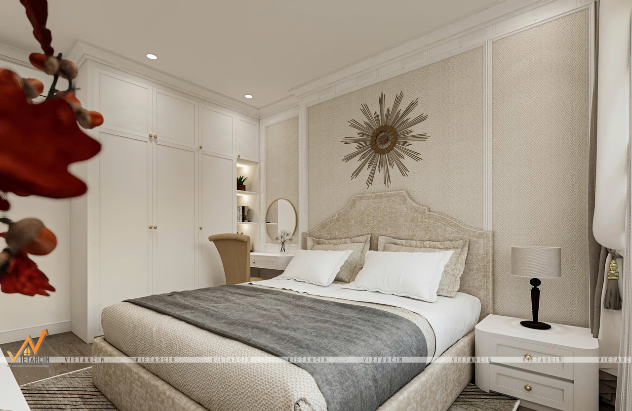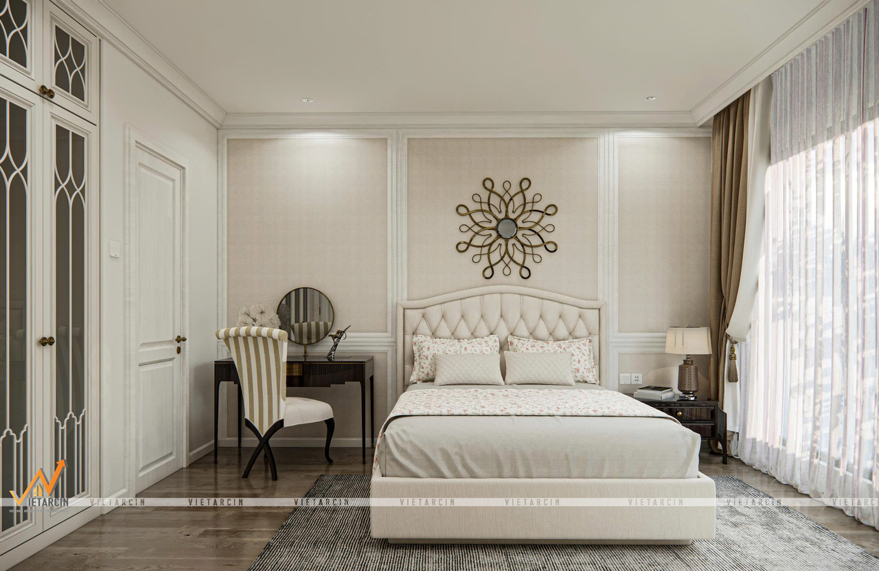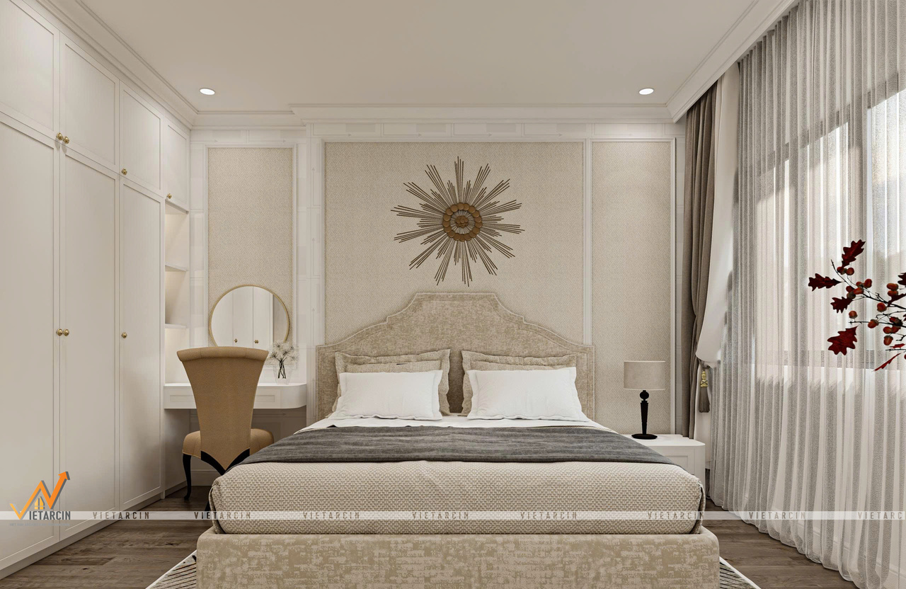 Khác với phòng khách cần sự lộng lẫy, phòng ngủ được thiết kế theo tiêu chí: “Đủ và Tinh”. Nội thất chỉ bao gồm những món đồ thiết yếu nhất để phục vụ nhu cầu nghỉ ngơi, bố trí gọn gàng, tuyệt đối tránh sự lộn xộn để nhường chỗ cho khoảng thở của không gian.
