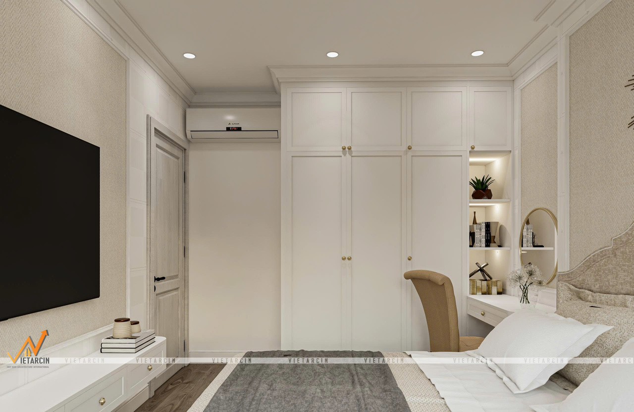 Cả hai phòng ngủ tại dự án này đều là minh chứng cho triết lý thiết kế của Vaidecor: “Không có không gian nhỏ, chỉ có không gian chưa được tối ưu”. Bằng cách sử dụng phào chỉ tiết chế và đặc biệt là hệ thống tủ “đo ni đóng giày”, chúng tôi đã biến những diện tích khiêm tốn thành những không gian nghỉ dưỡng thực thụ cho các thành viên trong gia đình.