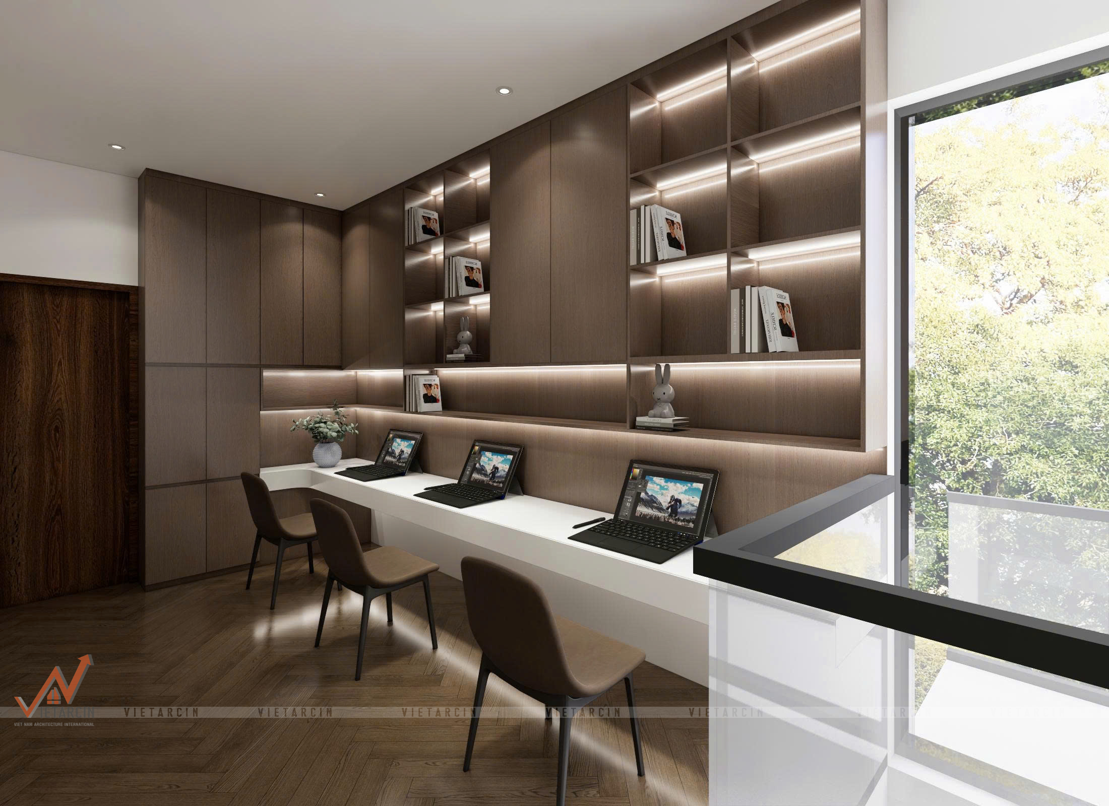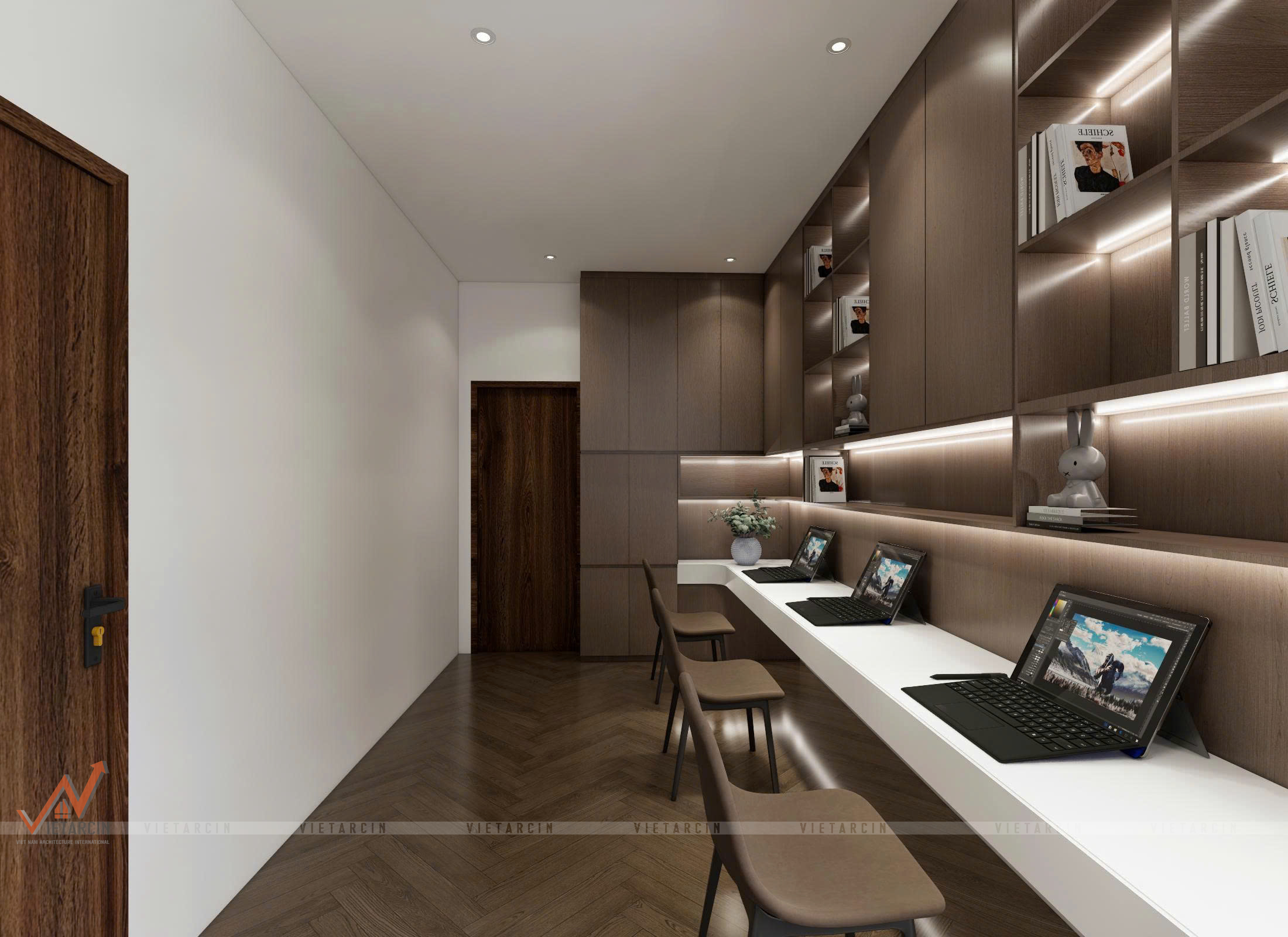 Tầng trên được Vaidecor quy hoạch để tối đa hóa sự riêng tư cho không gian nghỉ ngơi cá nhân và đảm bảo một khu vực làm việc chuyên biệt, hiệu quả.