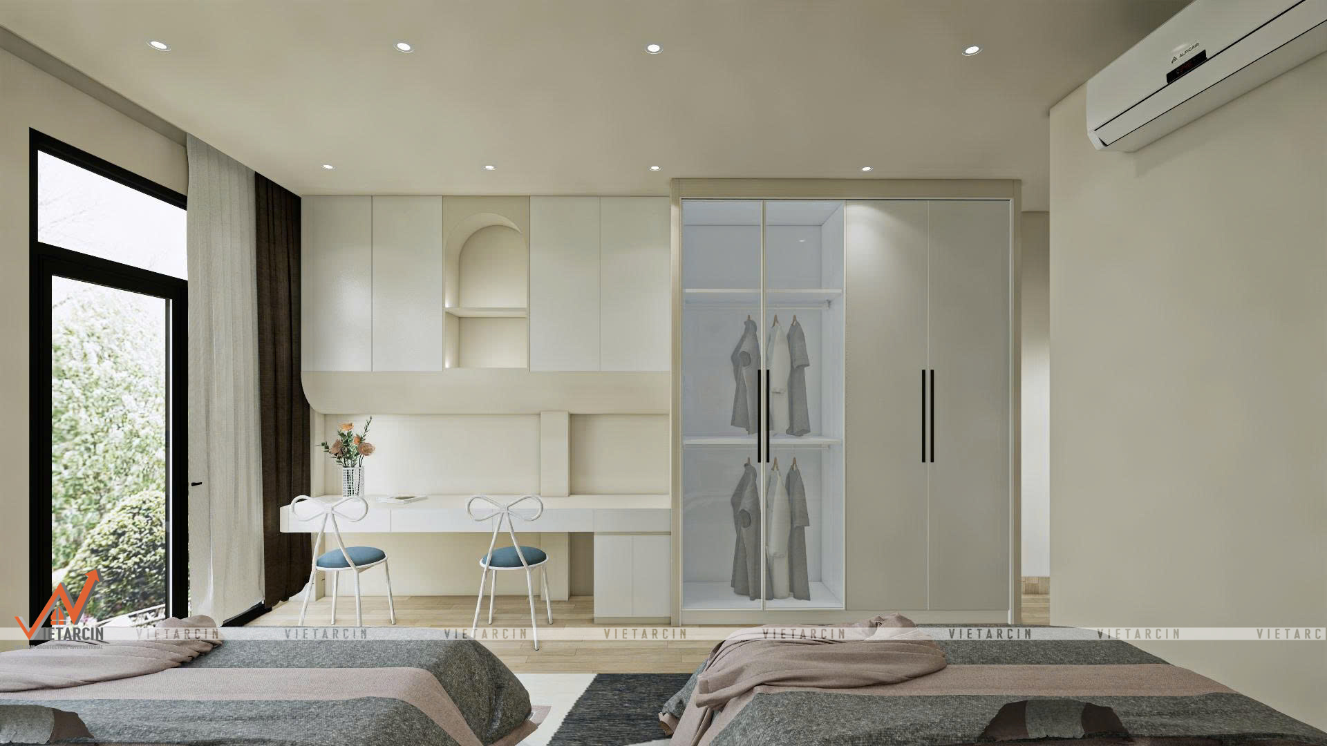 Phòng ngủ đôi được thiết kế để không chỉ là nơi nghỉ ngơi mà còn là không gian học tập, vui chơi và phát triển của trẻ.