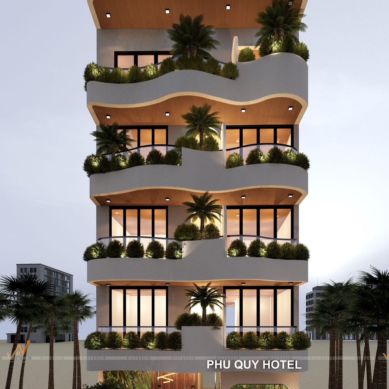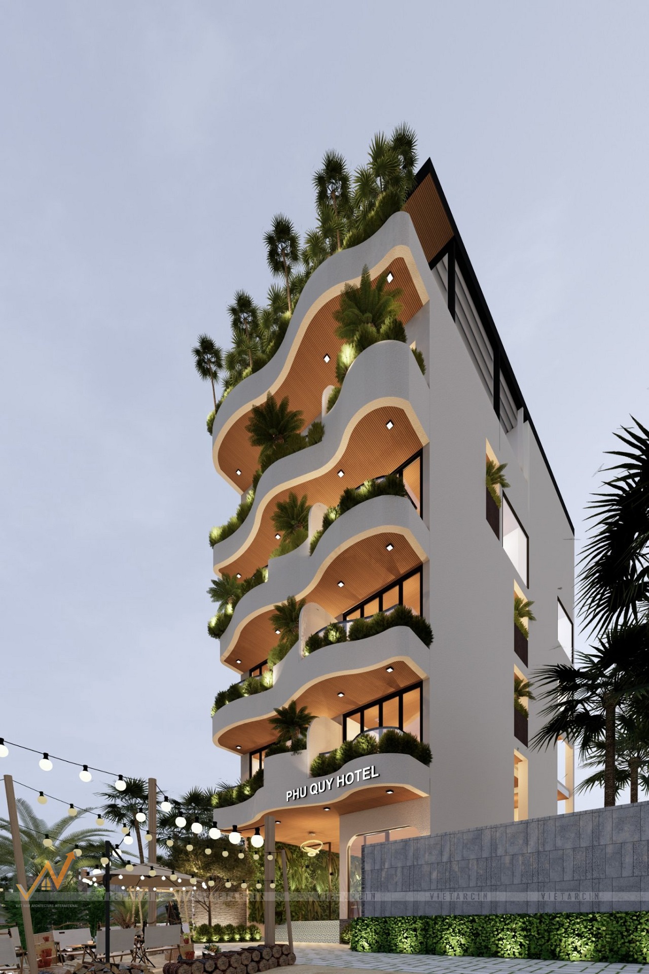 Kết quả cuối cùng là một công trình kiến trúc ấn tượng, nổi bật trên hòn đảo xinh đẹp. Khách sạn không chỉ trở thành một điểm nhấn về mặt thẩm mỹ mà còn là biểu tượng cho sự kết hợp thành công giữa thiết kế hiện đại và tinh thần bản địa. Với chi phí 4.5 – 5 tỷ đồng (chưa bao gồm chi phí thi công nội thất), Vaidecor không chỉ mang lại một công trình vững chắc, đẹp mắt mà còn tạo ra một không gian kinh doanh hiệu quả cho chủ đầu tư. Sau khi đi vào hoạt động, khách sạn đã nhận được nhiều phản hồi tích cực từ du khách, chứng tỏ giá trị mà chúng tôi đã mang lại.