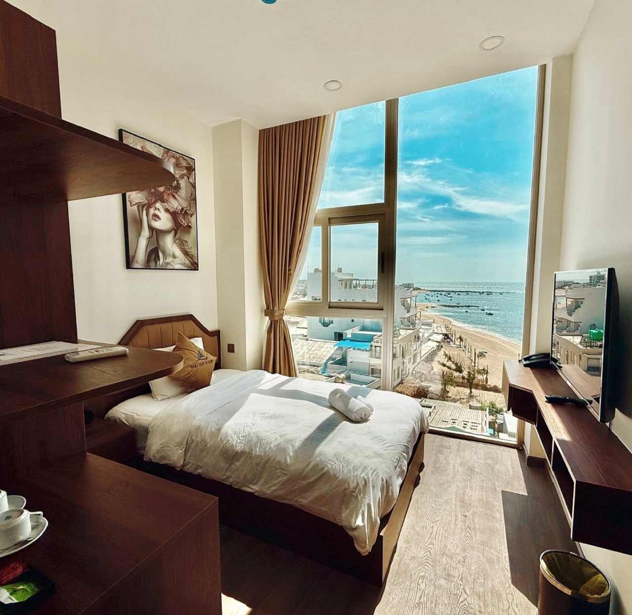 Từ một ngôi nhà nhỏ của ngư dân, với hiện trạng cũ kỹ, khá xập xệ, nhưng có hướng nhìn ra biển rất đẹp, vì thế chủ đầu tư mong muốn tận dụng tối đa cảnh quan thiên nhiên, thiết kế khách sạn ưu tiên sử dụng cửa kính lớn tại các phòng để mở rộng tầm nhìn ra biển. Điều này không chỉ giúp tận hưởng ánh sáng tự nhiên mà còn tạo nên sự kết nối hài hòa giữa không gian nội thất và cảnh quan bên ngoài.