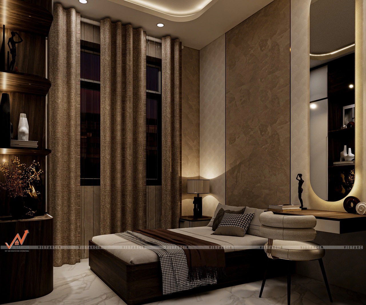 Đội ngũ thi công luôn chú trọng đến từng chi tiết, từ hệ thống ánh sáng, thiết kế đường cong cho đến bố trí nội thất, nhằm mang đến một không gian nghỉ dưỡng thực sự đẳng cấp.